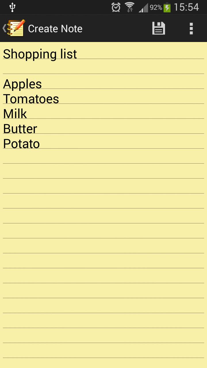 Utilisez-le pour les notes, les brouillons, la collecte d'idées, la création de listes de courses ou les listes de todo simples. Vous pouvez commencer à taper dès le démarrage de l'application et enregistrer les notes avec une seule touche.